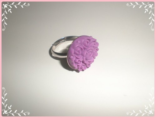 Anel ajustável em base metálica com cabochon roxo sintético...