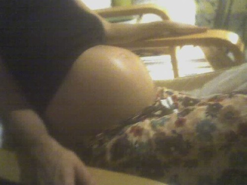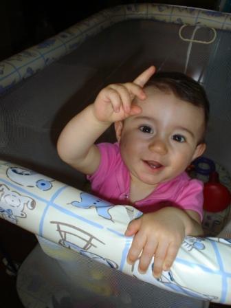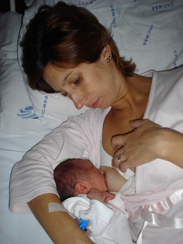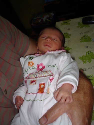 A mamar no dedo (já o fazia na barriga hehe) e com um babygrow vestido que já tinha sido meu:)