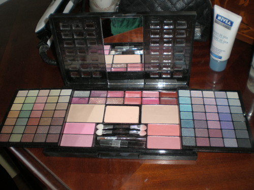 Em relação à qualidade das sombras... Estou satisfeita, são bastante pigmentadas e tem uma grande variedade de tons. Adoro os blushes, são mesmo os meus tons preferidos, os rosados e pêssegos, e os pós compactos são muito cheirosinhos...
