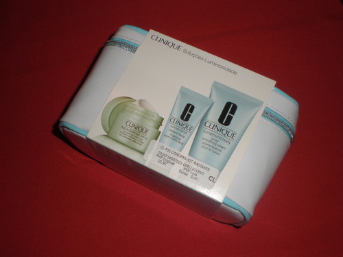 Um necessaire, com 3 produtinhos Clinique em miniatura, pela módica quantia de 9.45€. Existem 5 variedades: Anti-idade, Luminosidade, Anti-manchas, Anti-borbulhas e Anti-vermelhidão. Dão para tudo e para todos, portanto!