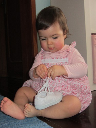 E eu que já ia lançada a comprar uns sapatos todos xpto da Chicco, tive a boa notícia que sapatos, sapatos, só quando começar a andar mesmo sozinha e que para já bastam sapatos que não derrapem. Maravilha, sempre se poupam uns tostões.