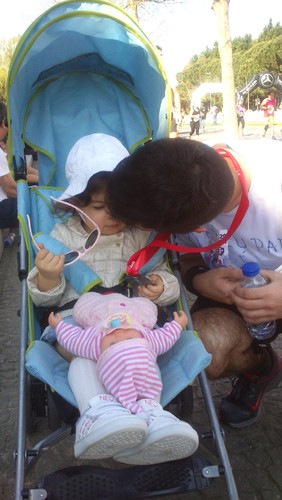 Domingo começou cedo, com a partida do S. para a Corrida do Dia do Pai. Levou a t-shirt que eu e a Pinypon andámos a pintar, ficou super gira e foi uma prenda antecipada para o papá. O pai lá foi, nós ficámos em casa e depois fomos ter à meta da corrida. Tanta gente que participou! Foi bonito de ver...