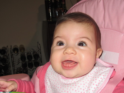 Vais alargando o teu menu à medida que os meses passam, já comes papa, sopinha de carne, maçã e banana. Dá gosto ver-te comer, até hoje só não adoras a maçã mas espero que aos poucos aprendas a gostar mais!