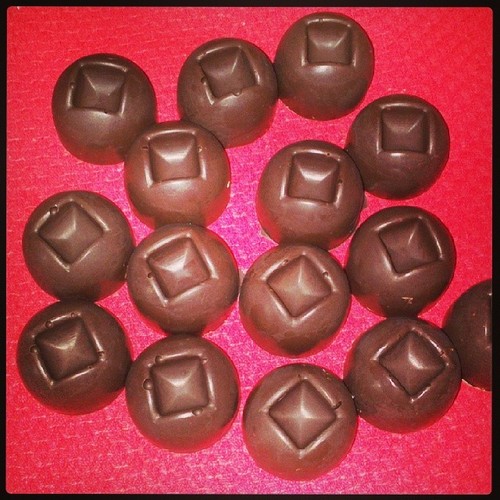 Uma das receitas das bolachas não correu muito bem e acabei por substituir por uma outra mais tradicional. Os bombons também requereram alguma ginástica, só após conversações com a minha amiga Ju, pro em bombons caseiros, é que a coisa atinou e sairam duas versões - chocolate preto e chocolate e nozes. Foi só juntar as compotas - de tomate e de abóbora com nozes ou canela - e voilá, umas prendinhas à maneira.