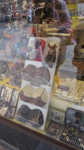 Antes de mais, os chocolates. Há chocolaterias por todo o lado, é uma loucura! Não fossem os preços algo proibitivos e tinha saído de lá a rebolar. A imaginação é o limite, há chocolates de todas as formas e feitios e dos mais variados sabores. Em Bruges há inclusivé o Museu do Chocolate! Aliás, em Bruges há uma chocolateria em cada esquina, com montras lindíssimas... Adorei mas lá resisti!