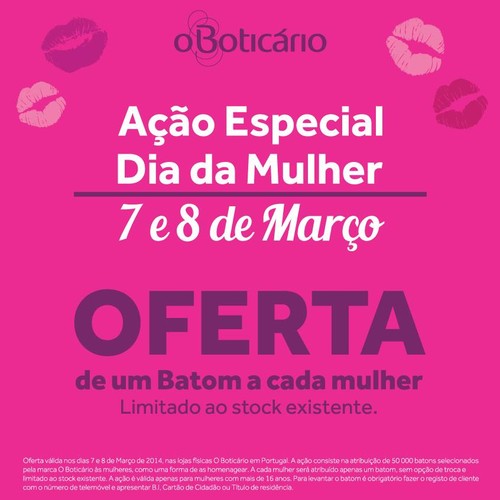 Como já vem sendo hábito, O Boticário vai mimar as mulheres no dia 8 de Março.